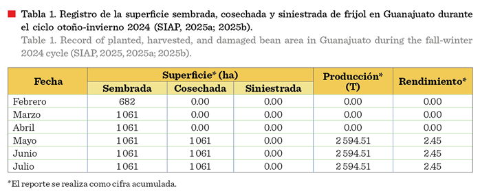 Research (INIFAP) recorded total and partial losses in common bean