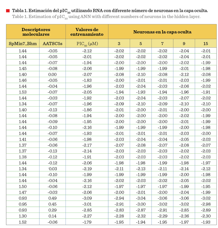 la capa oculta. La mejor estimación de pIC50 se logró empleando un