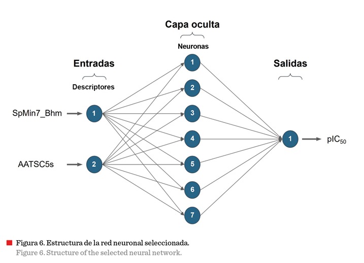 diseño de RNA con 7 neuronas en la capa oculta y dos descriptores moleculares